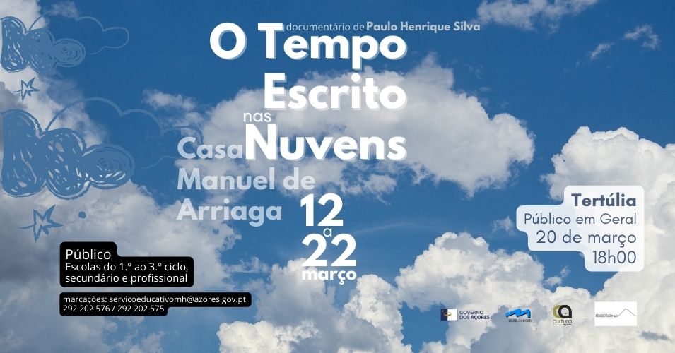 É com satisfação e regozijo que o Museu da Horta apresenta no próximo dia 20 de março, pelas 18h00, na Casa Manuel de Arriaga, o documentário produzido pelo Museu do Pico e da autoria de Paulo Henrique Silva “O Tempo Escrito nas Nuvens”. Este documentário, repleto de testemunhos da terra e do mar, reflete o conhecimento e sabedoria das gentes do Pico que aprenderam a ler o tempo, através da experiência e da observação das nuvens, da montanha, da terra, do mar, do sol, da lua e das estrelas. Após a apresentação do documentário, segue-se uma tertúlia, que será moderada por Jorge Fontes – biólogo. Esta iniciativa destina-se ao público em geral e é de livre acesso.