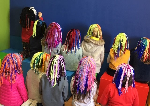 Este ano, apostando na utilização de lãs e de tecidos e no reaproveitamento de materiais, confecionámos cabeleiras e outros a dereços alusivos à época.