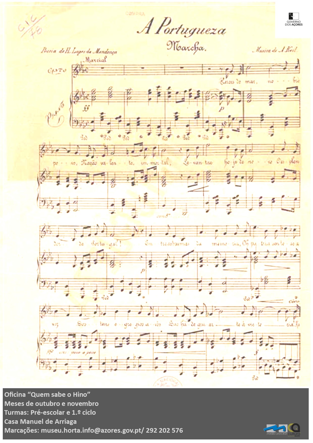 O Museu da Horta promove nos meses de outubro e novembro, uma oficina denominada “Quem sabe o Hino ”, destinada a turmas do Pré-escolar e 1.º ciclo.