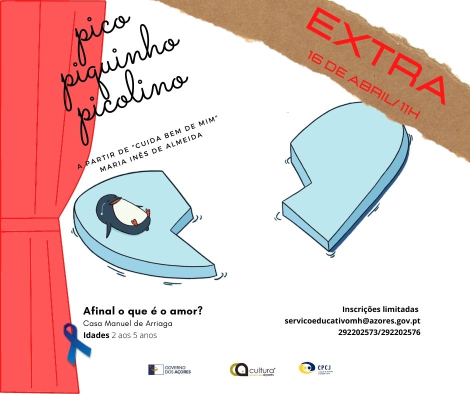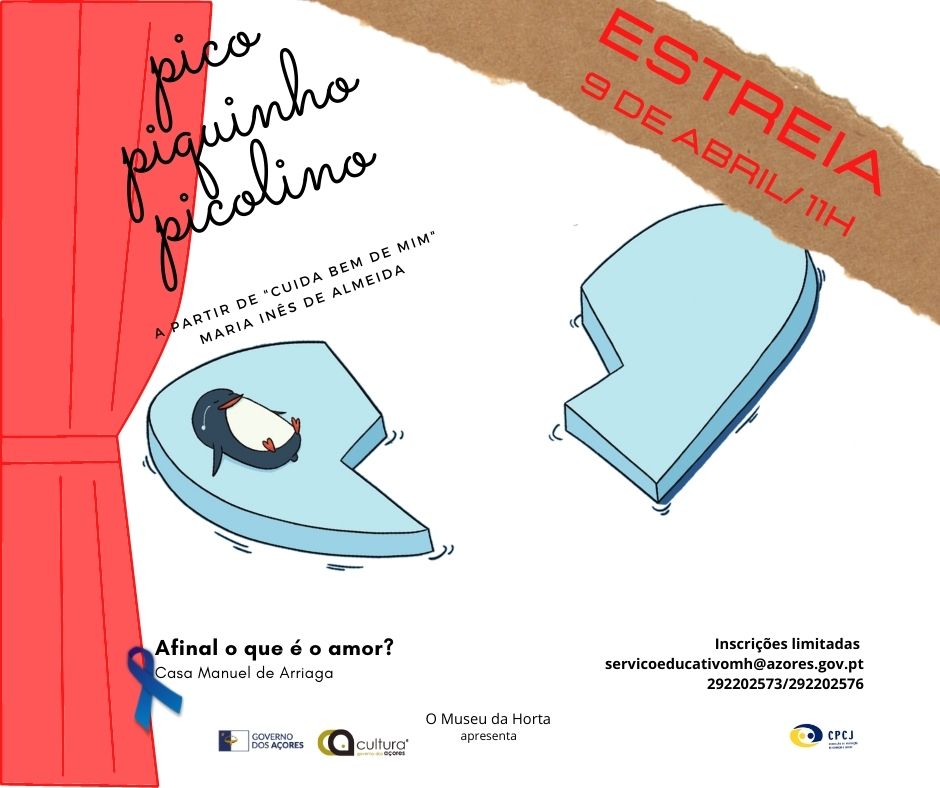 A Peça “Pico, Piquinho, Picolino”, adaptada pelo Serviço Educativo do Museu da Horta, a partir do livro “Cuida Bem de Mim” de Maria Inês de Almeida, ilustrado por Manuel Cruz, editado pela Comissão Nacional de Promoção e Proteção dos Direitos das Crianças e Jovens.