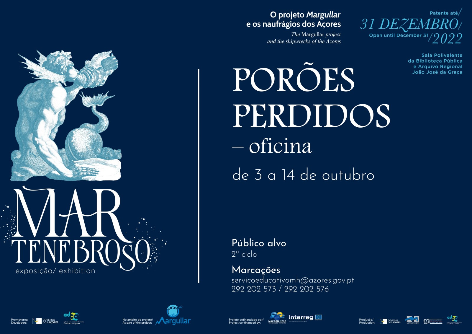 O Museu da Horta desenvolverá entre 3 e 14 de outubro a oficina “Os porões perdidos”, no âmbito da exposição Mar Tenebroso. O projeto “Margullar” e os naufrágios dos Açores, patente ao público na Sala Polivalente da Biblioteca Pública e Arquivo Regional João José da Graça.