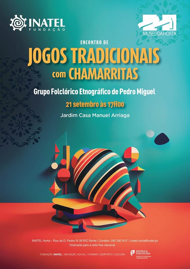 O Museu da Horta convida para o Encontro de Jogos Tradicionais com Chamarritas, que terá lugar na Casa Manuel de Arriaga, no dia 21 de setembro (sábado), pelas 17h00.