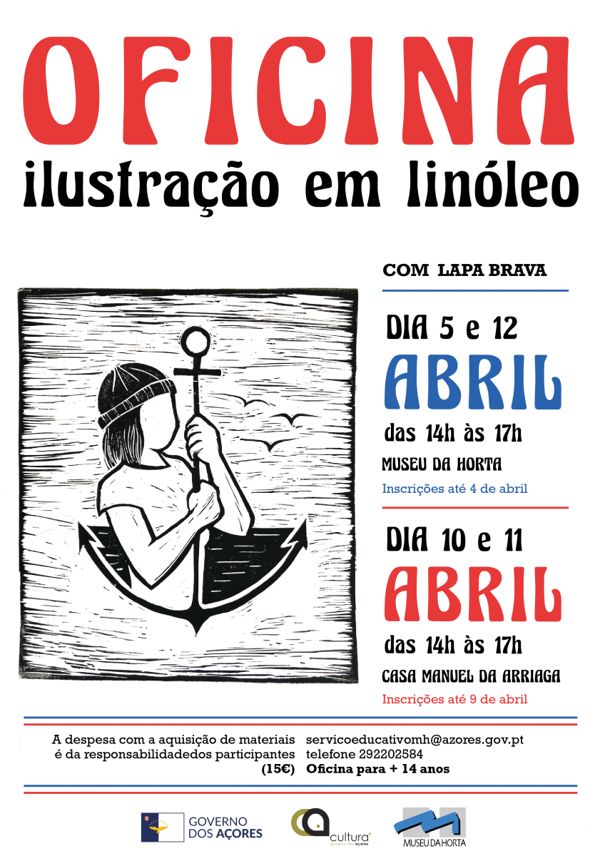 O Museu da Horta, em parceria com a ilustradora e desenhadora gráfica Raquel Vila, através do seu projeto criativo Lapa Brava, promove estas duas oficias que pretendem introduzir a arte da ilustração com a realização de uma gravura em linóleo.